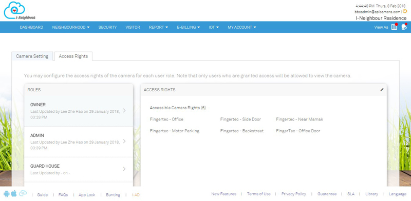 | Through Camera Settings page, Administrators are allowed to click on “Add” to connect the configured cameras from EpiCamera to i-Neighbour system. Note that the configuration of the camera can only be carried out through EpiCamera via Web Browser or Mobile Application. By configuring the user’s access in Access Rights, Administrators can determine which users are authorized to view the camera.