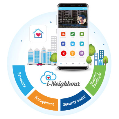 In line with the concept of nature, Green Residence takes another step into preserving and appreciating nature by adopting i-Neighbour for its Smart Community system. i-Neighbour is a cloud-based fully automated community system that provides residents with an App to manage various aspects of communication living such as receiving visitors into the enclave, exchanging feedback for improvement between residents and management, broadcasting announcements to all residents, and more.